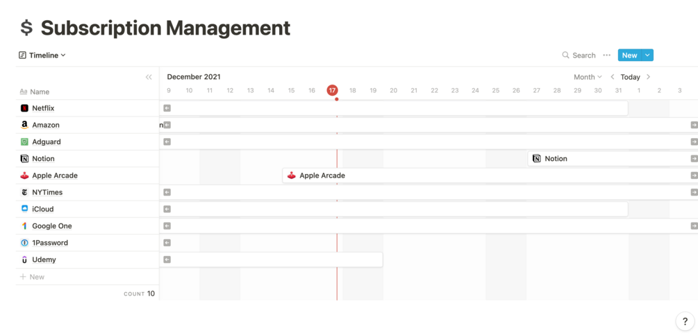 A simple notion template for keeping track of all of your subscriptions in one spot.